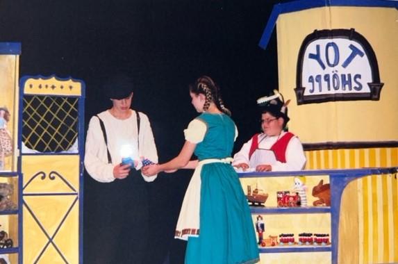 In the next scene we see Lilli and Ludwig unpacking the bag of toys and cleaning the shop. Waldemeir’s nephew, Friedrich arrives to pick up the rent. Instantly there is chemistry between Lilli and Friedrich. He warns them about the town. As he goes to leave, Lilli hands him a toy, a gift. Suddenly, Friedrich sees the three (human sized) toys move. He thanks them and hurries off. The toys seem very worried that they won’t be able to change anything in this village, Ludwig and Lilli remind them that they can’t give up, “Step by Step”